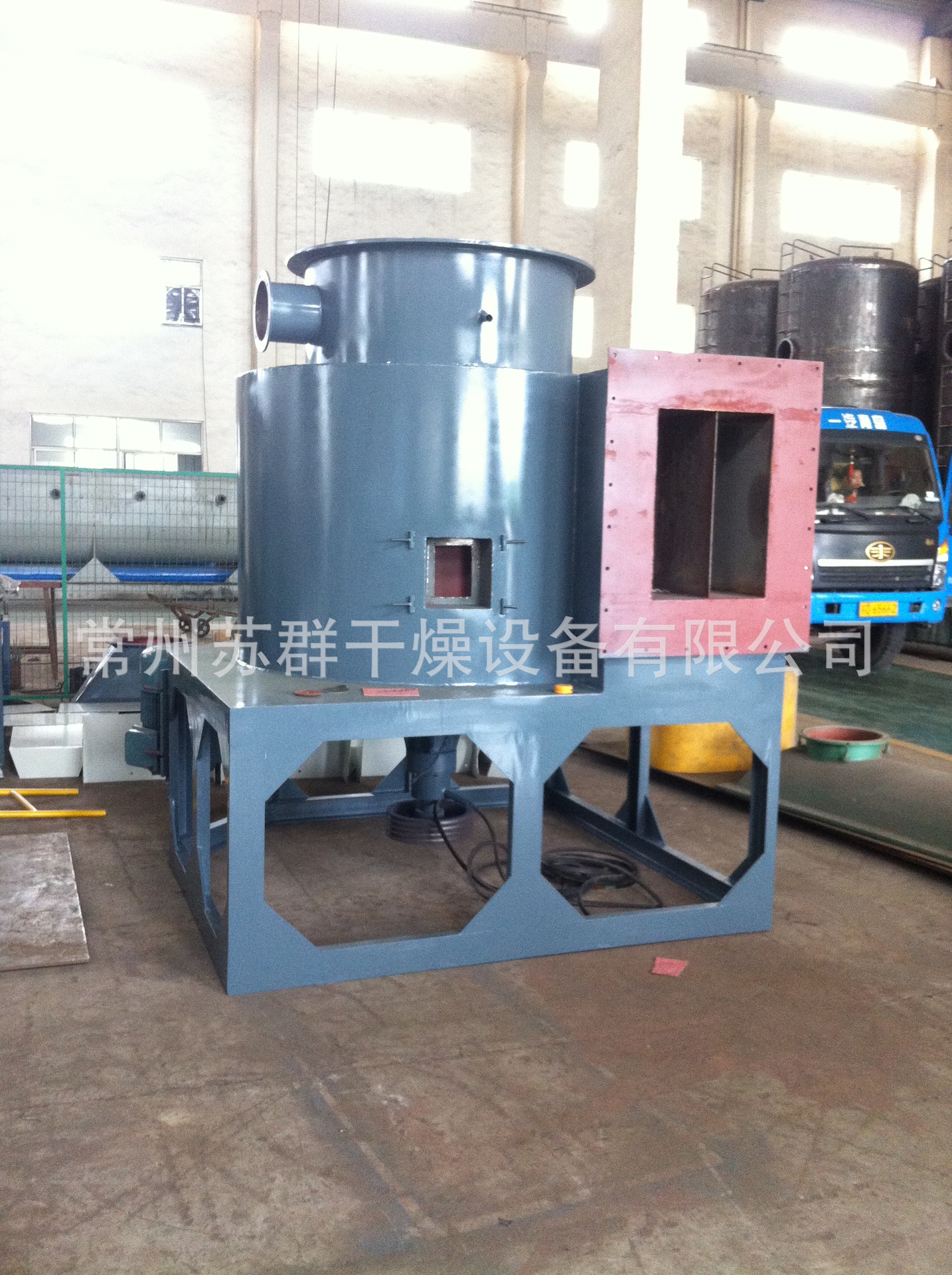 旋轉(zhuǎn)閃蒸干燥機是集干燥、粉碎、篩分于一體的新型連續(xù)式干燥設(shè)備,特別適用于濾餅狀、膏糊狀、稀泥漿狀物料的烘干。閃蒸干燥機主要由進風(fēng)系統(tǒng)、加熱系統(tǒng)、加料系統(tǒng)、干燥主機、收料除塵系統(tǒng)、排風(fēng)系統(tǒng)、控制系統(tǒng)等組成。工作時,濕物料由螺旋加料器進入干燥室,物料在干燥室中與高速旋轉(zhuǎn)的熱風(fēng)相遇,細(xì)粉狀物料被熱風(fēng)帶著向干燥室上端移動,不能帶走的物料落在干燥室底部,被底部的粉碎裝置打碎,物料被迅速分散,物料與熱風(fēng)的接觸面積迅速增大。在離心力的作用下(頂部有分級裝置),達(dá)到干燥程度和一定細(xì)度的產(chǎn)品被吹出分級裝置,物料在此過程中得到快速干燥。